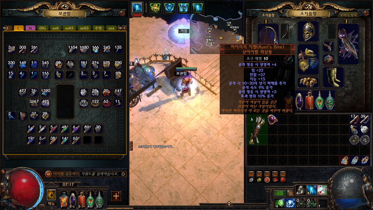 이렇게 커럽을 통한 화살 1개 추가 옵션이 붙으면 대박!!!