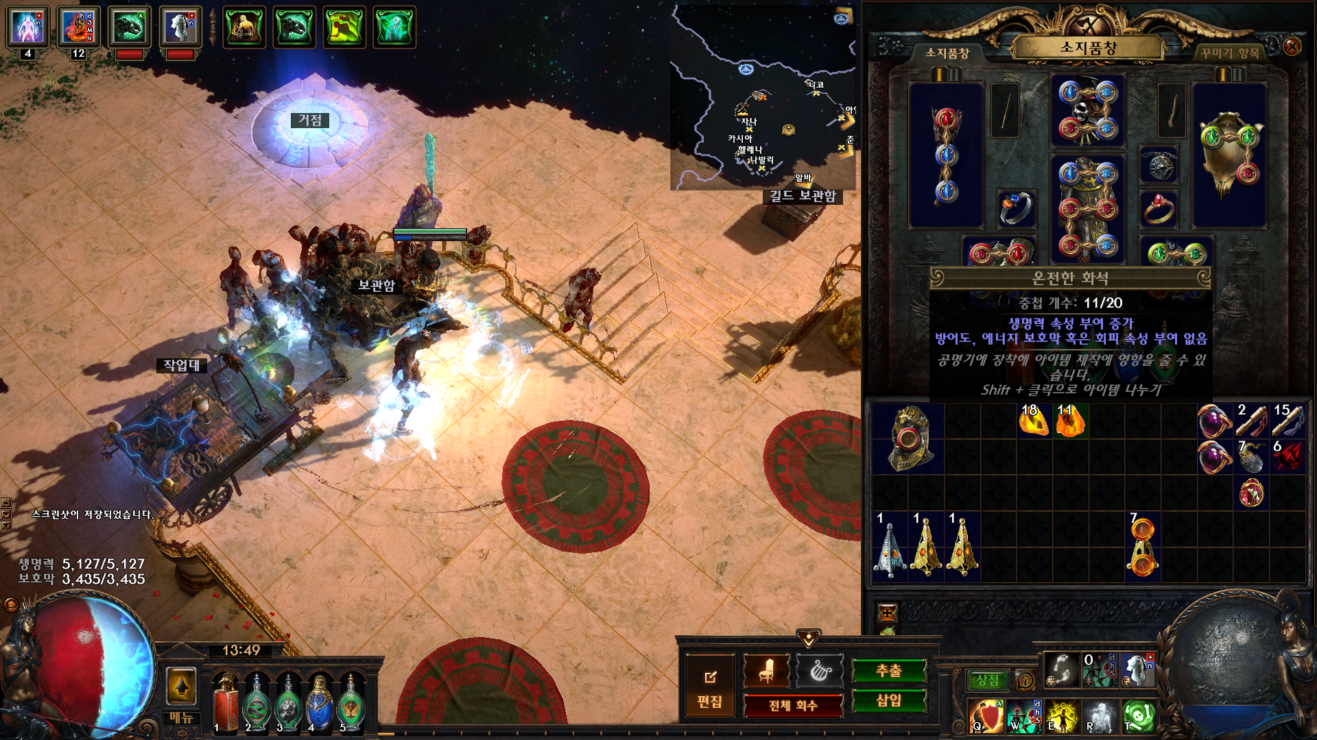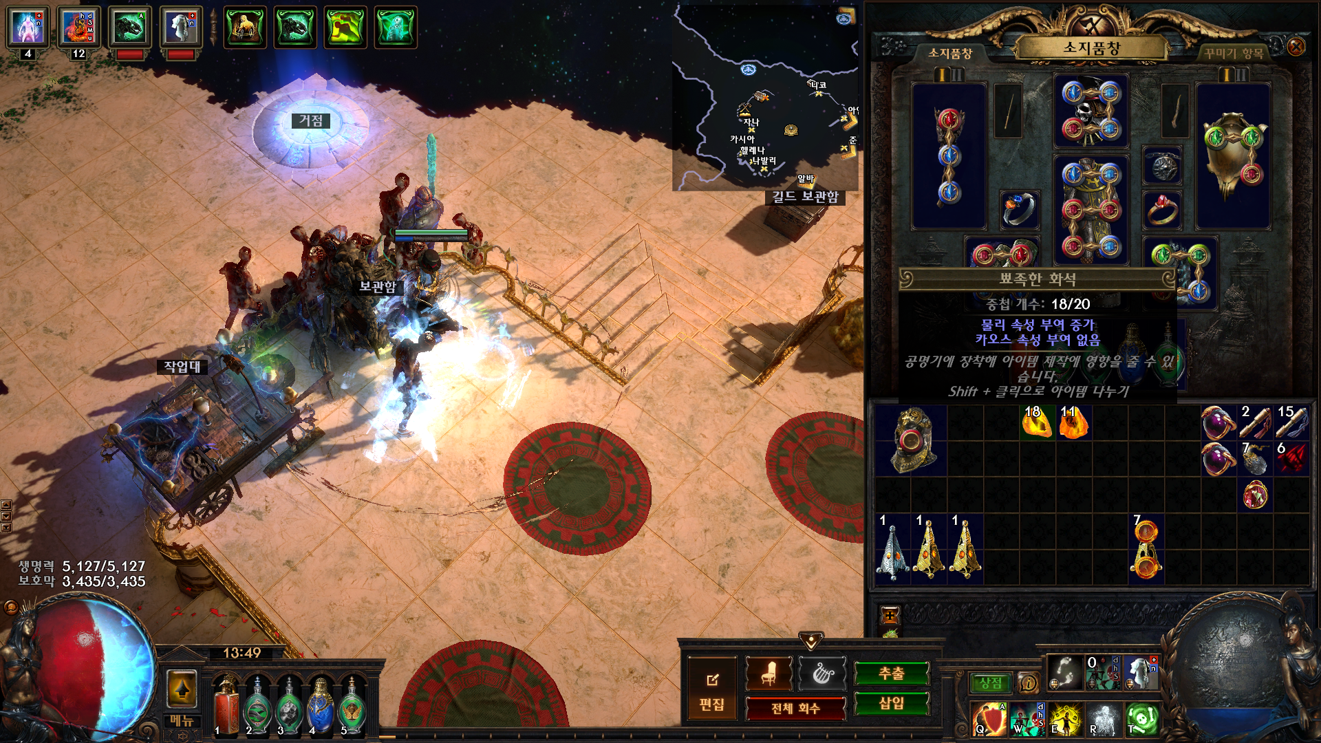 생명력 옵션과 주변적이 받는 물리피해 9% 옵션을 가져오기 위해서 온전한화석, 금속성화석을 준비합니다.