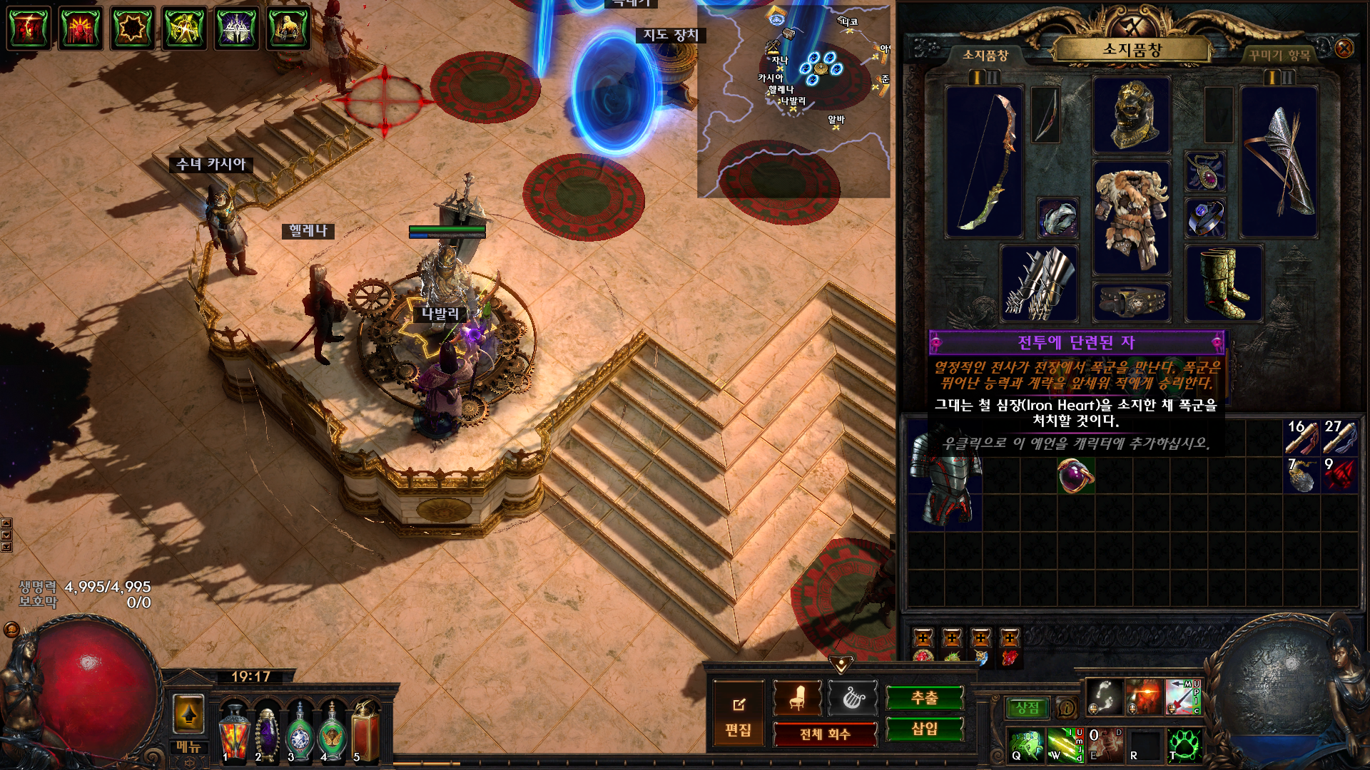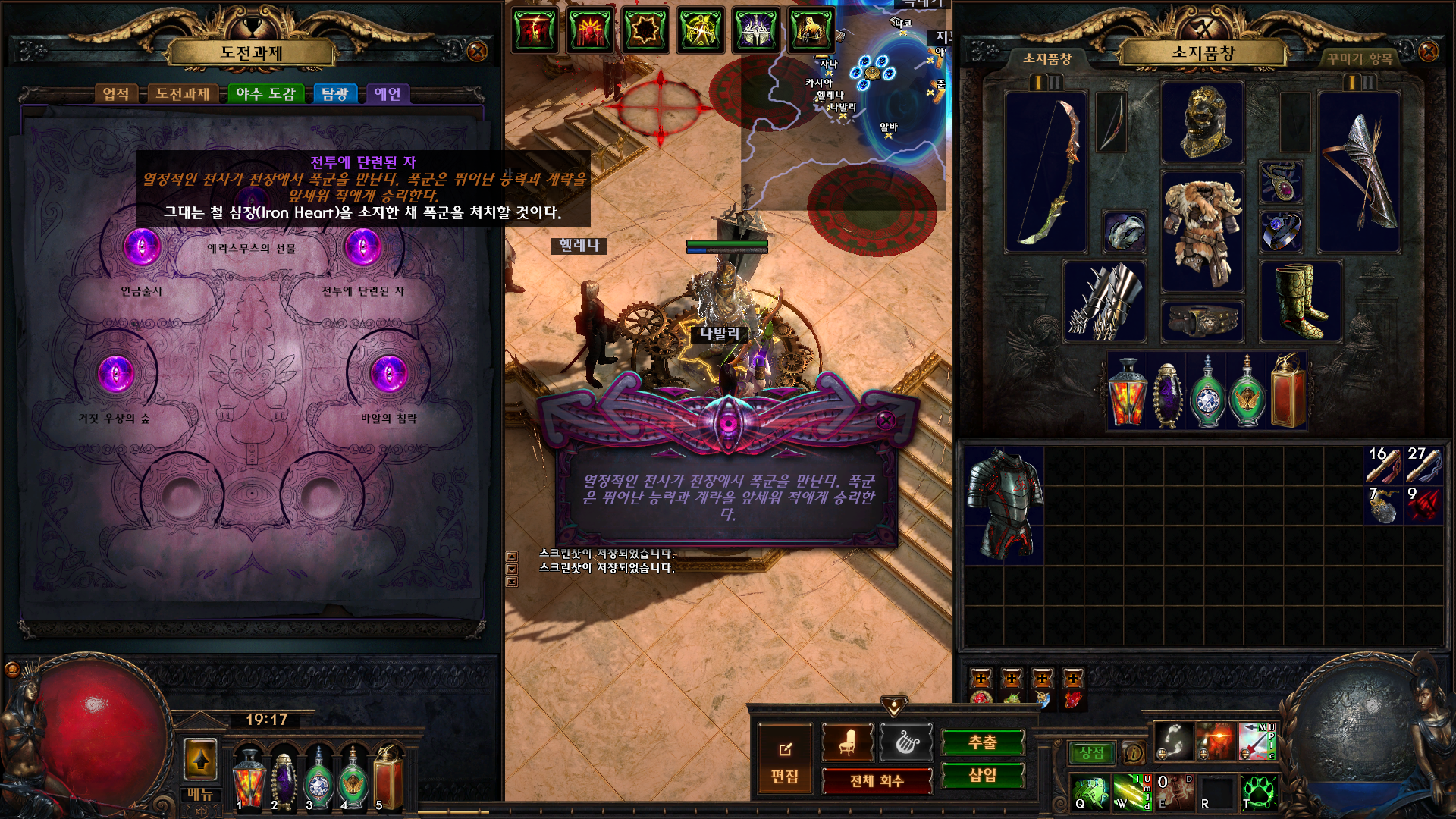 우선 전투에 단련된자 예언과 철 심장 갑옷을 준비합니다.