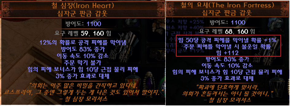 철 심장(십자군 판금갑옷)을 철의 요새(십자군 판금값옷)로 업그레이드 할수 있는 전투에 단련된 자 예언에 대해알아보겠습니다.