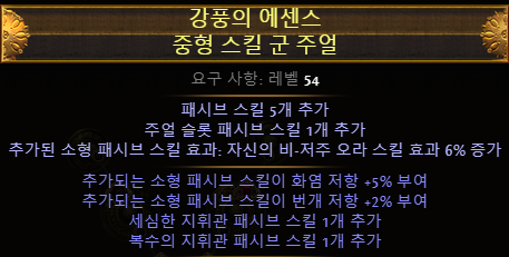 중형 스킬군 주얼 옵션패시브 스킬 4~5개(6개부터는 포인트 낭비가 있습니다)자신의 비 저주 오라 스킬 효과 6%증가복수의 지휘관세심한 지휘관