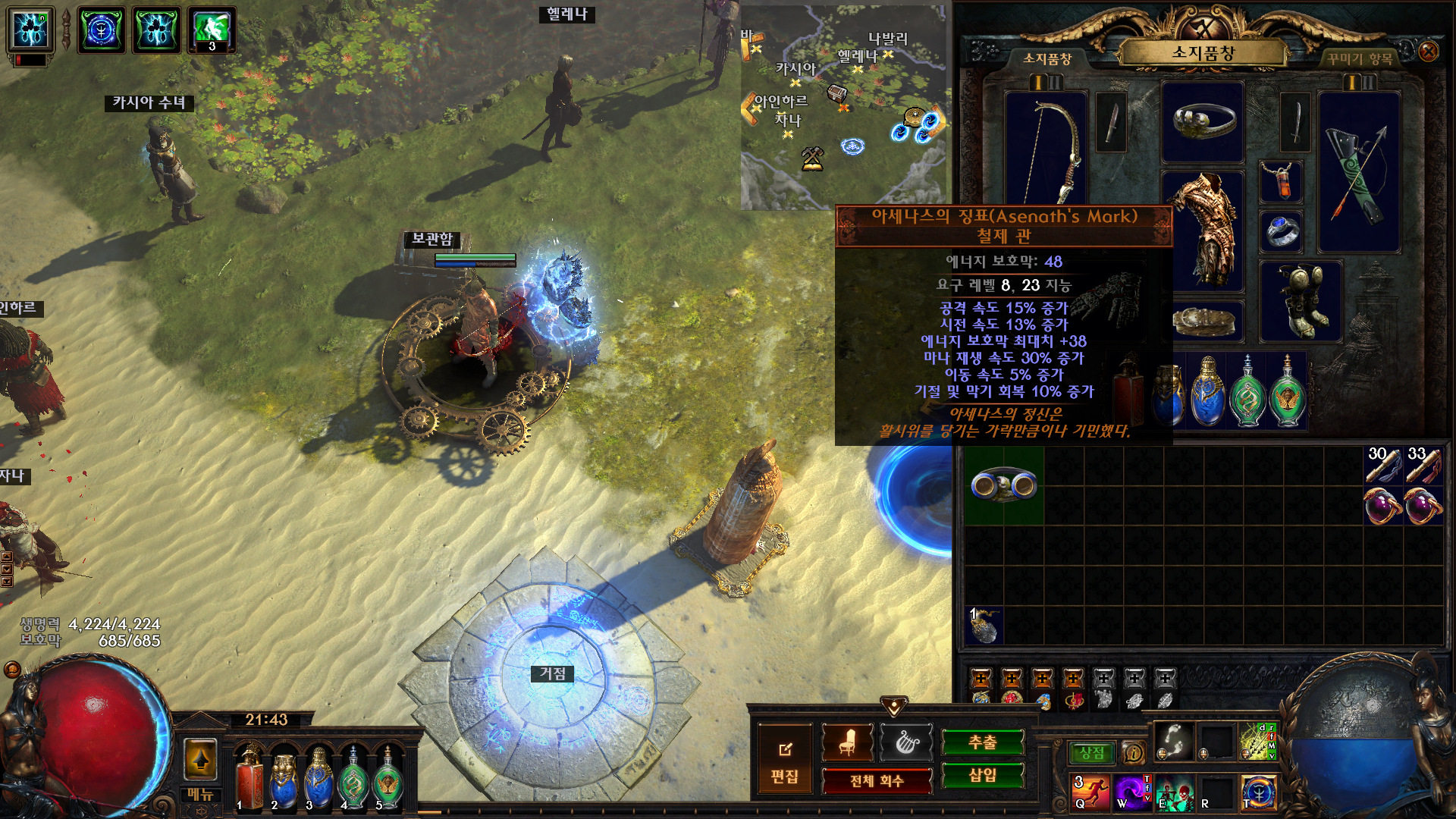 1. 아세나스의 징표 인벤에 가지고 있기