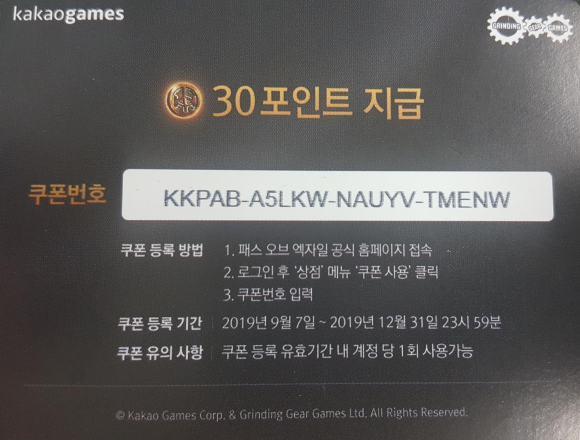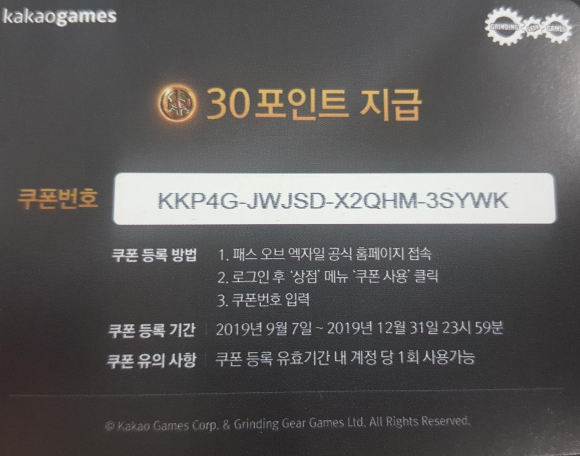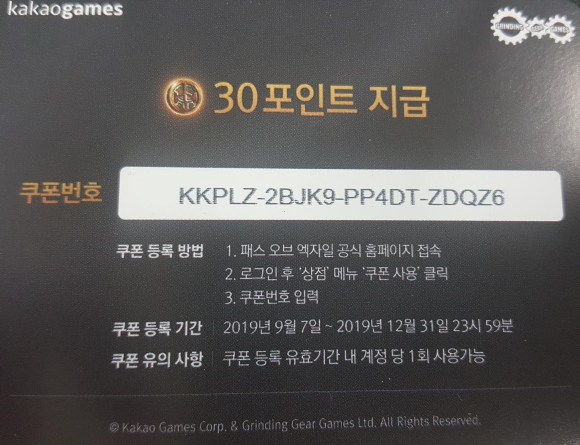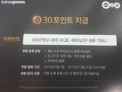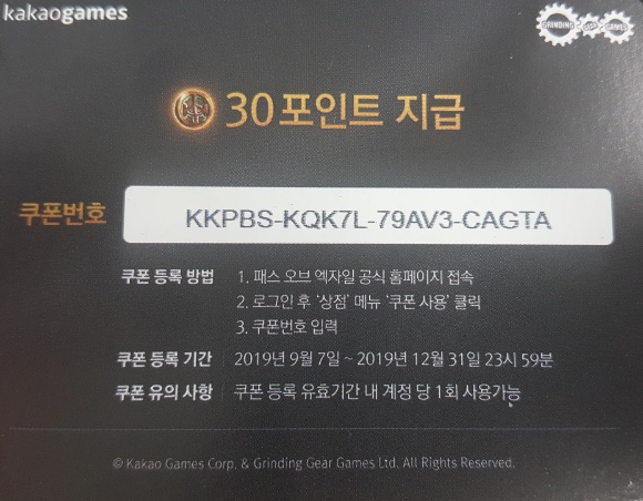 패스오브엑자일 30포인트 쿠폰 공유합니다.