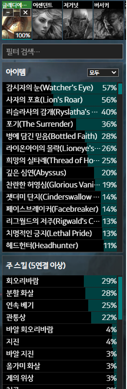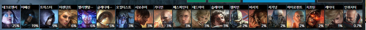 어느순간 닌자 캐릭터 점유 상위에 올라와 있는 글래디에이터(상위라고 하지만 점유율 5%)