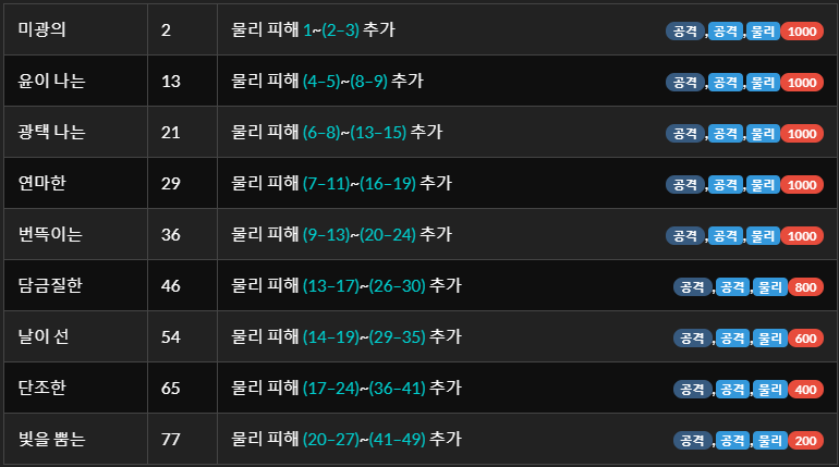 2. 변화의 오브로 물리 피해 # ~ # 추가 1티어