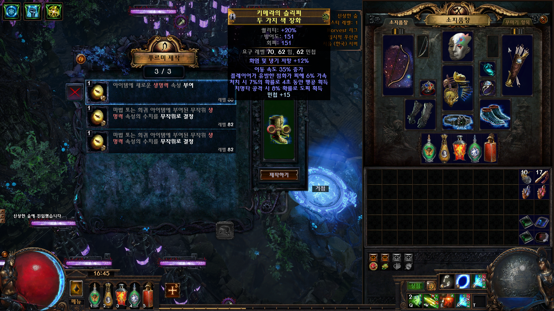 저는 수확크래프팅중 속도 카오스 크래프팅이 많이 있어서 수확 크래프팅으로 하였습니다.