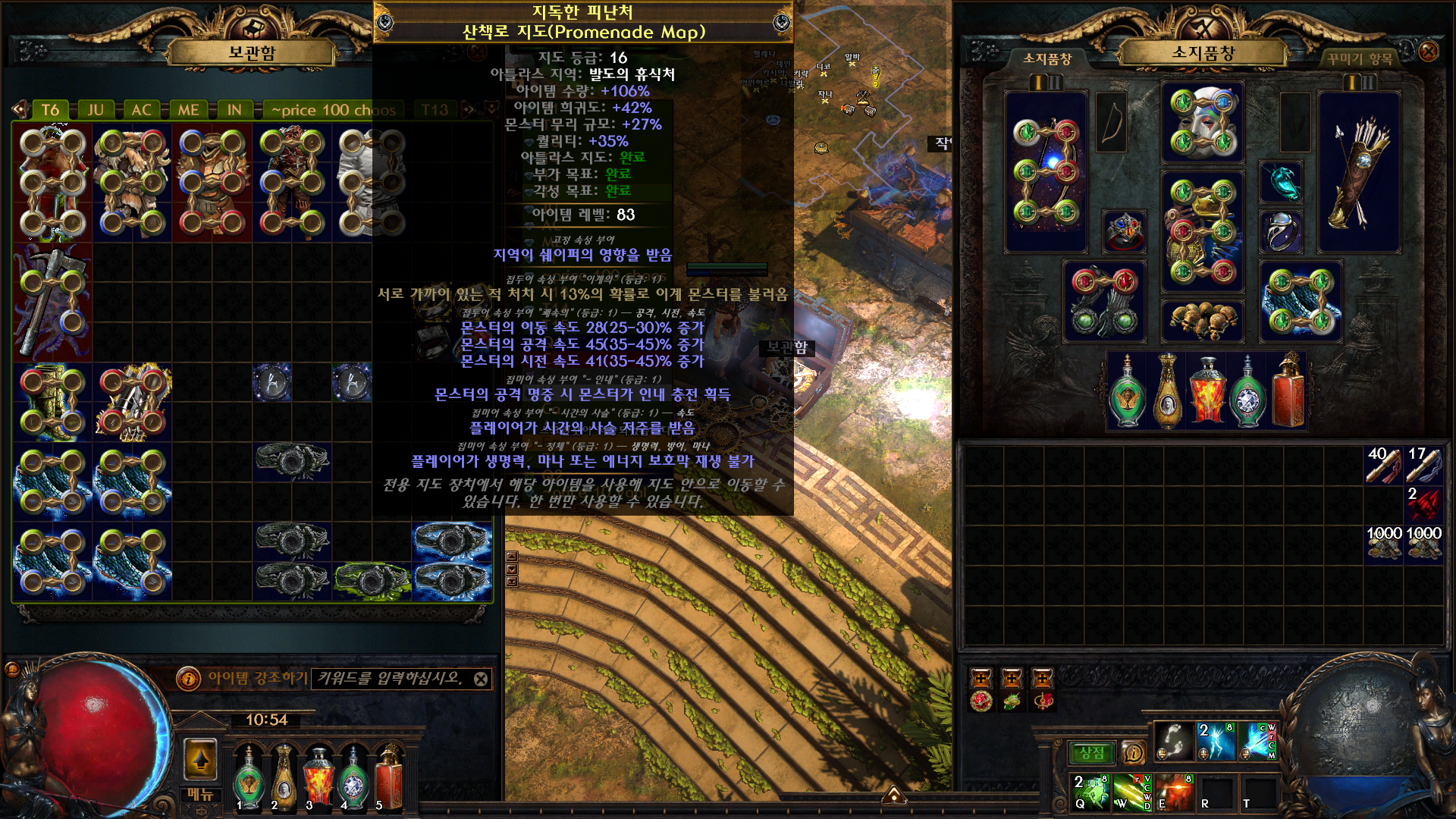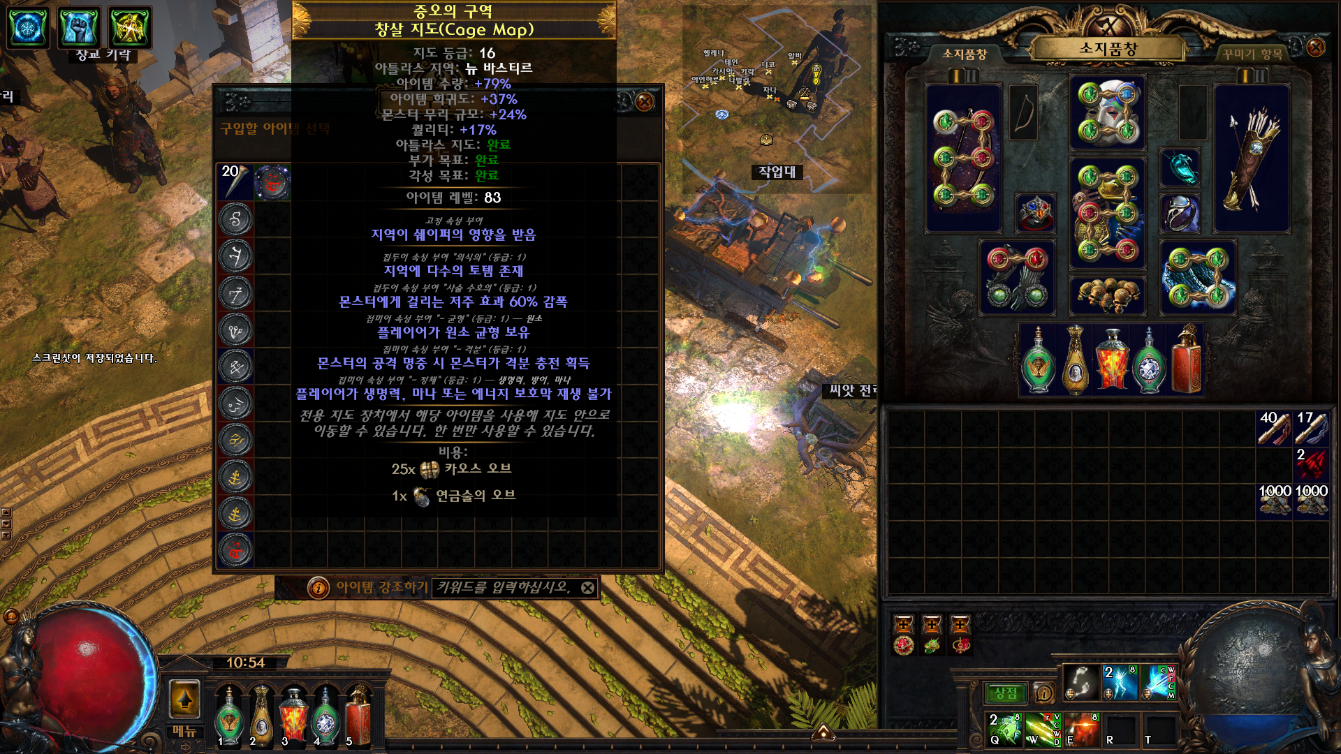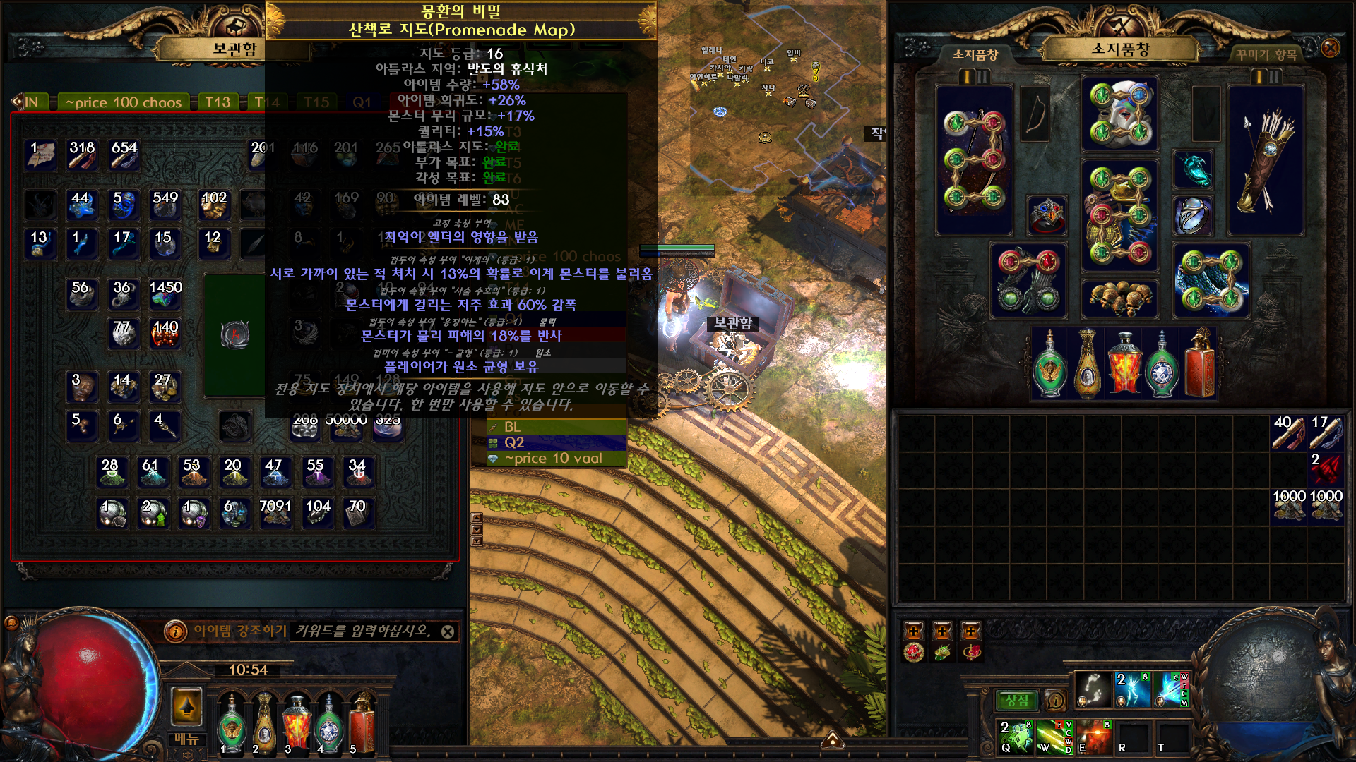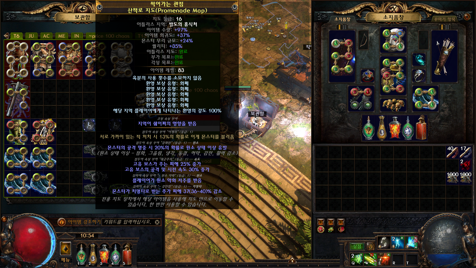 상아색 감시자의돌(공포등) 지역 몬스터 레벨 +1 옵션이나 취향에 맞는 육분의를 발라주고 진행하시면 되나 어느정도 스펙이 되어야 수월하게 진행할수 있습니다.