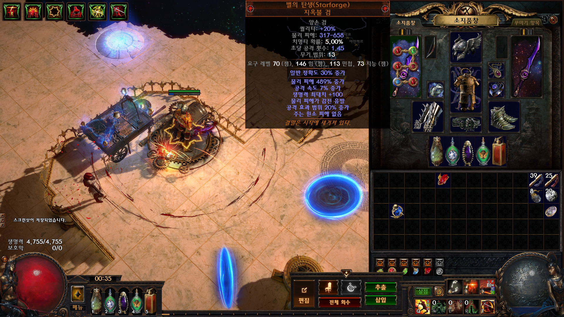 마나 소모 -15 옵션, 치명타확율, 생명력 에 힘줄절단 1렙 까지 있으면 좋으나 가격이~~ㄷㄷㄷ