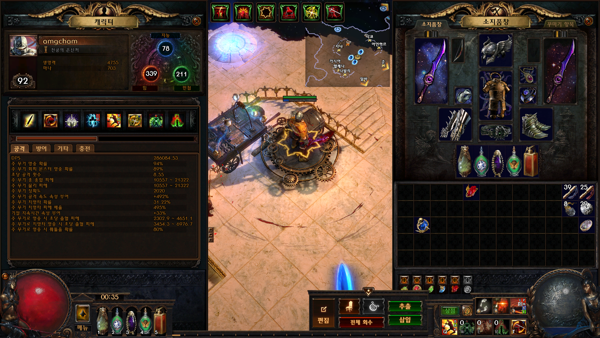 92렙 기준이며 렙업시 9시쪽 생명력 노드에 좀더 투자할 예정입니다.